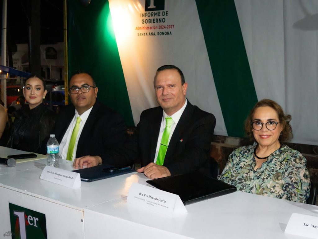 Ante cientos de Santanenses el Alcalde Arq. Javier Moreno rindió su primer informe de gobierno en una sesión solemne realizada en la Explanada de la Plaza Zaragoza, donde estuvo presente la Dra. Eva Moncada Garcia en representación especial del Gobernador del Estado Alfonso Durazo.